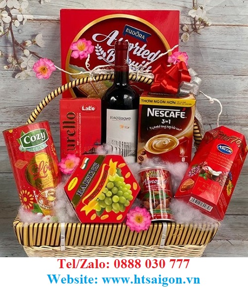 - Giỏ quà Tết đóng sẵn: kết hợp bánh kẹo, bia, nước ngọt, gia vị, trà, cà phê… được đóng gói sang trọng, làm quà biếu tặng ý nghĩa.
